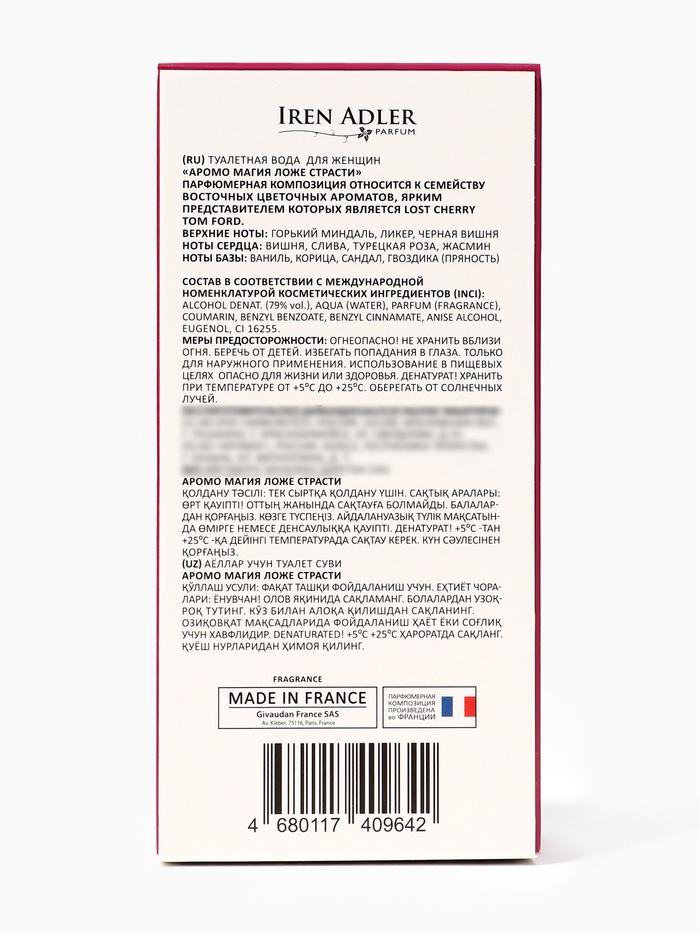 Флакон: 30 мл — компактный, стильный и удобный для ношения с собой, отражает концепцию аромата: страсть, соблазнительность и притягательная элегантность.