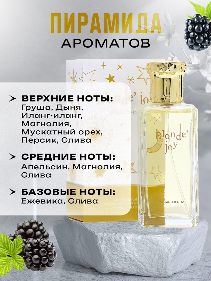 Верхние ноты: Магнолия, Слива, Груша, Дыня, Персик, Мускатный орех, Иланг-иланг