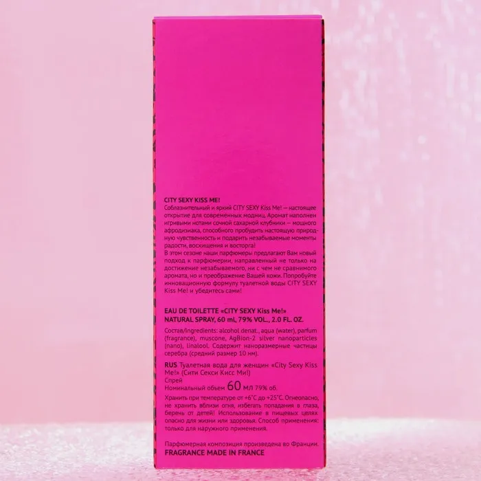 Соблазнительный и яркий CITY SEXY Kiss Me! – настоящее открытие для современных модниц! Аромат наполнен игривыми нотами сочной сахарной клубники – мощного афродизиака, способного пробудить настоящую природную чувственность и подарить незабываемые моменты радости, восхищения и восторга!