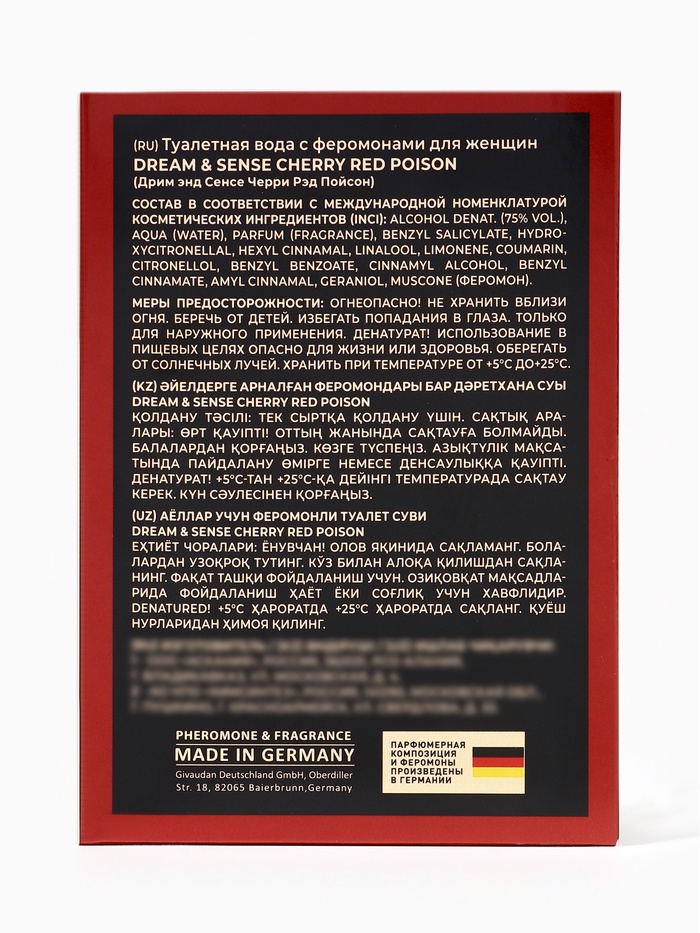 Dream & Sense Cherry Red Poison — это аромат для женщин, которые любят дерзость, страсть и выразительность. Он создан для тех, кто хочет оставаться яркой и запоминающейся, подчеркивая свою индивидуальность и харизму. Этот парфюм словно соблазнительная вишня в сочетании с ночной интригой, притягивающий взгляды и создающий ауру загадочности.