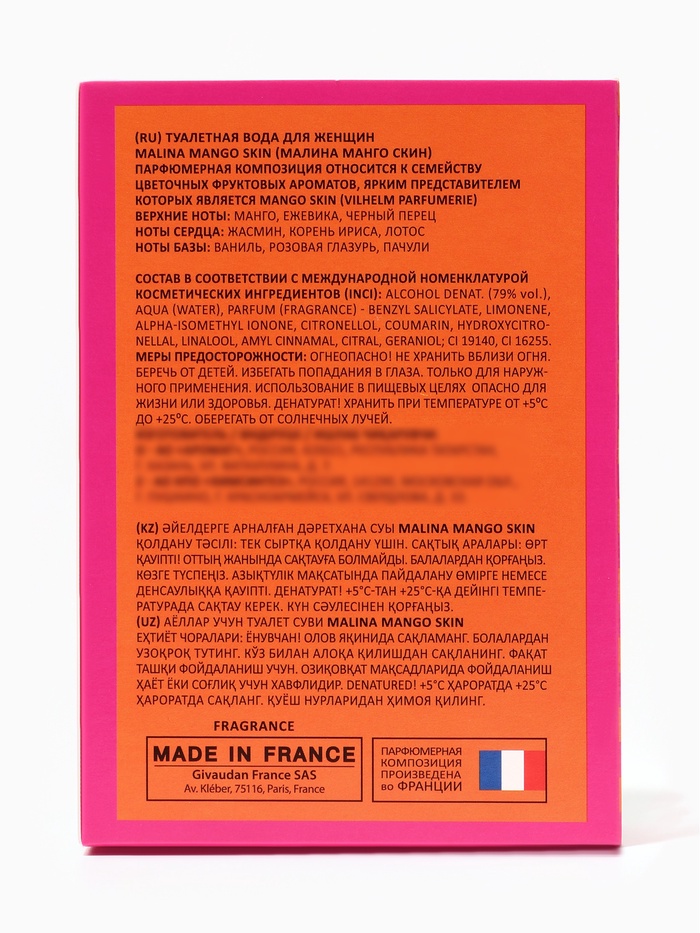 Malina Mango Skin — это аромат для женщин, которые любят солнечное настроение, сочные фрукты и лёгкость летнего дня. Он создан для тех, кто ценит яркость, свежесть и игривую женственность. Этот парфюм словно спелое манго под летним солнцем, наполняющее день радостью, энергией и чувственной мягкостью.
