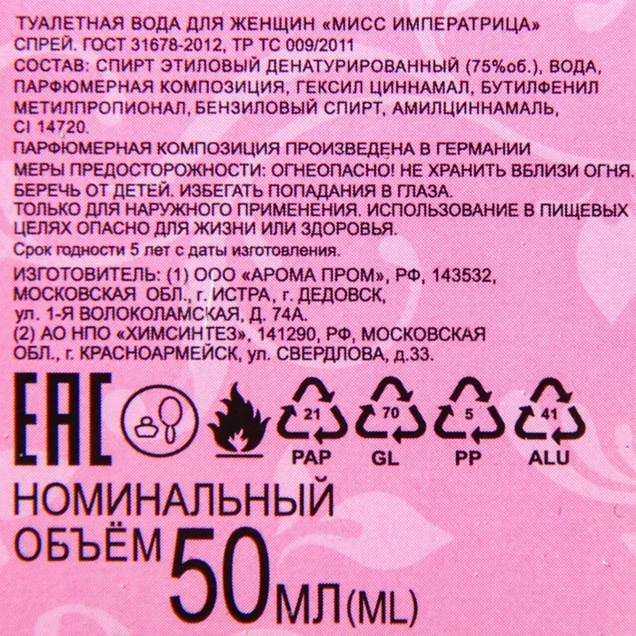 Туалетная вода женская Miss Imperatrice, 50 мл (по мотивам L`Imperatrice 3 Anthology (D&G) — Характеристики