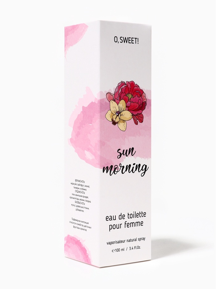 O, Sweet! Sun Morning — это аромат солнечного утра, свежести и лёгкой радости. Он создан для женщин, которые любят ощущение свободы, яркие эмоции и позитивное настроение. Этот парфюм словно первые солнечные лучи, пробивающиеся сквозь окно, наполняя день теплом и энергией.