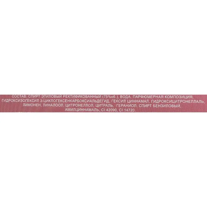 Композиция: чёрная смородина, цитрусы, клубника, красное яблоко, белая фрезия, сладкий горошек, жасмин, роза, сандаловое дерево, амбра, мускус, малина.