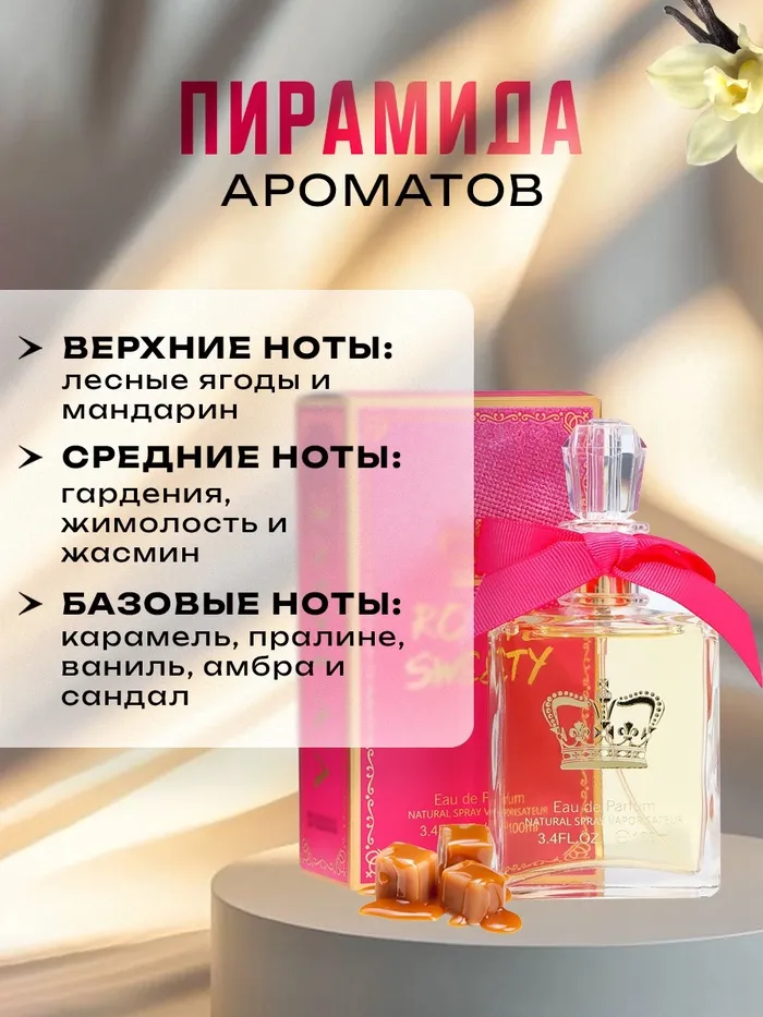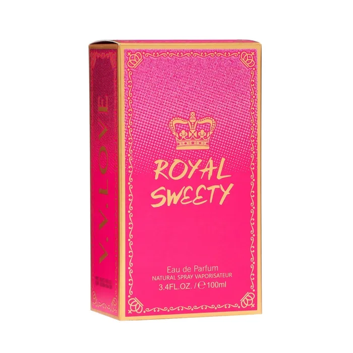 Туалетная вода отлично подходит как для дневного применения, так и для веселых походов на вечеринки или в клуб. Ароматическая композиция составлена настолько удачно, что аромат звучит множеством «аппетитных», соблазнительных оттенков. Фруктово-цветочный аромат Royal Sweety поистине достоин самого взыскательного, гурманского вкуса! Он полон обворожительных ноток карамели, гардении и пралине. Дизайнерский флакон, в который помещен аромат, также выглядит достойно – украшенный модным красным бантиком, он так и намекает на изящество и утонченность своей владелицы. Парфюм замечательно подчеркнет Вашу индивидуальность, экстравагантность и привлекательность.