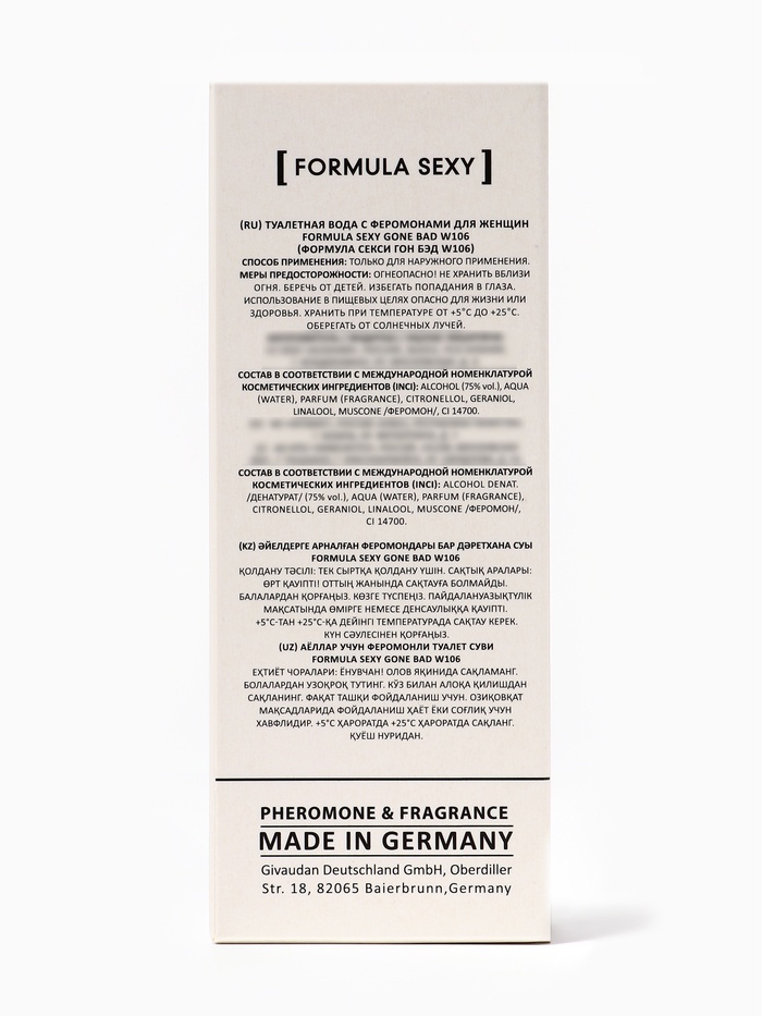 Formula Sexy Collection Gone Bad W106 идеально подходит для вечерних мероприятий, свиданий и особых случаев, когда хочется быть смелой, обаятельной и притягательной. Аромат раскрывает внутреннюю силу, сексуальность и магнетизм женщины, создавая образ уверенной, харизматичной и интригующей натуры.