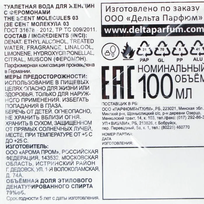 Туалетная вода женская с феромонами The Scent Molecules 03, 100 мл (по мотивам Mexx Woman (Mexx) — Характеристики