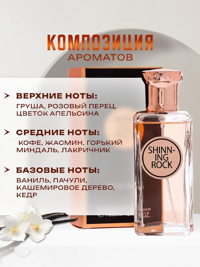 Shining Rock придется по вкусу уверенным в себе девушкам и женщинам, обольстительным и смелым, которые попросту не умеют проигрывать. Аромат идеально сочетается абсолютно с любой одеждой: джинсами и футболкой, летним платьем, юбкой. Вне зависимости от одежды, женщина будет окружена вниманием.