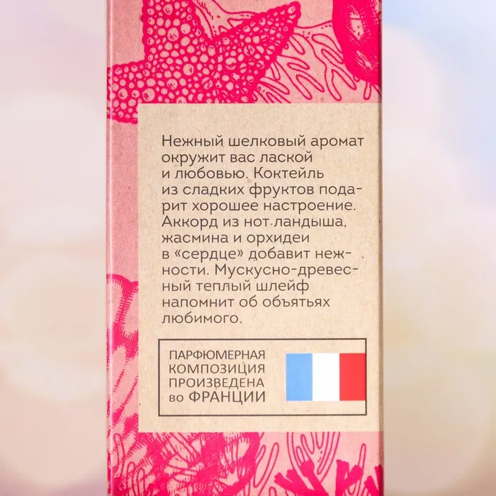 Нежный шелковый аромат окружит вас лаской и любовью. Коктейль из сладких фруктов подарит хорошее настроение. Аккорд из нот ландыша, жасмина и орхидеи в "сердце" добавит нежности. Мускусно-древесный теплый шлейф напомнит об объятьях любимого.
