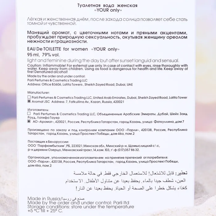 Туалетная вода женская YOUR Only, 95 мл — Характеристики