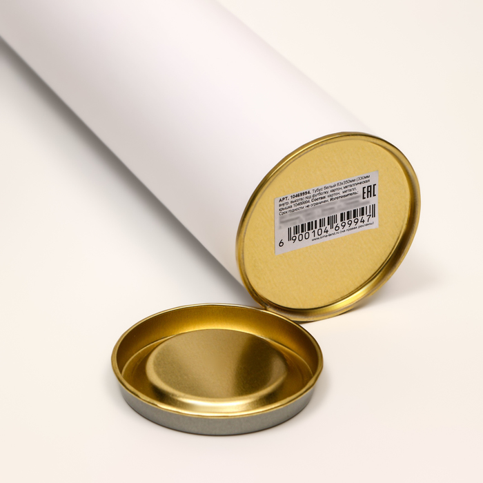 Тубус 63×350 мм (330 мм внутр. высота), под футболку, белая, картон, металлическая крышка — Характеристики