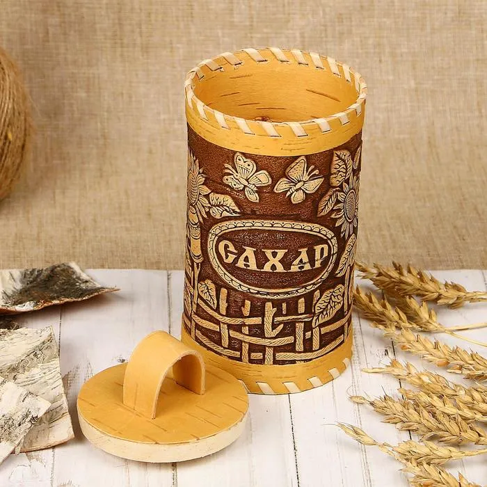 Туес береста «Подсолнухи: сахар», банка для сыпучих, 8×17.5 см — Характеристики