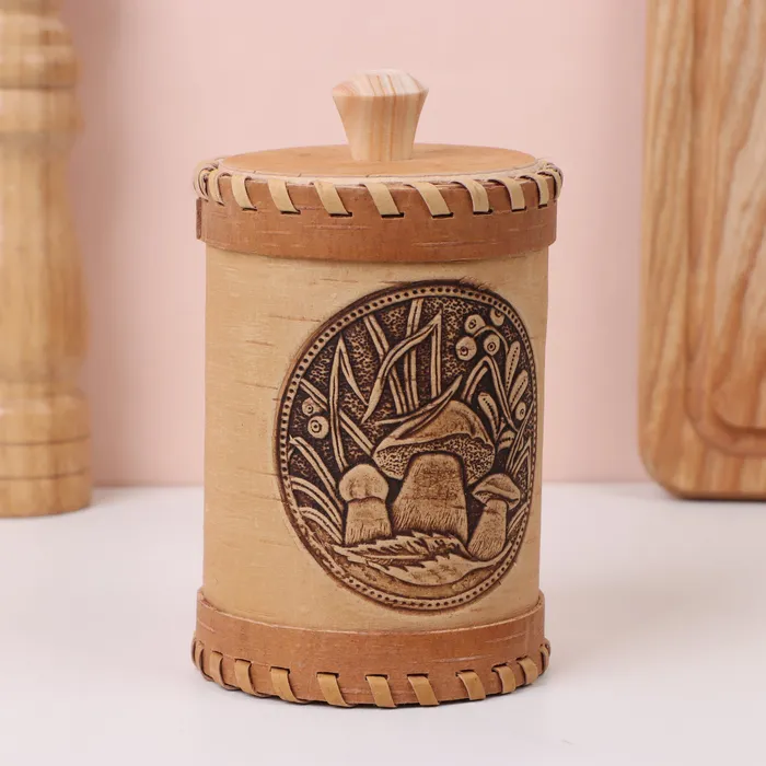 - В туесе удобно носить и хранить грибы и ягоды. При этом он не дает продукту впитывать посторонние запахи.