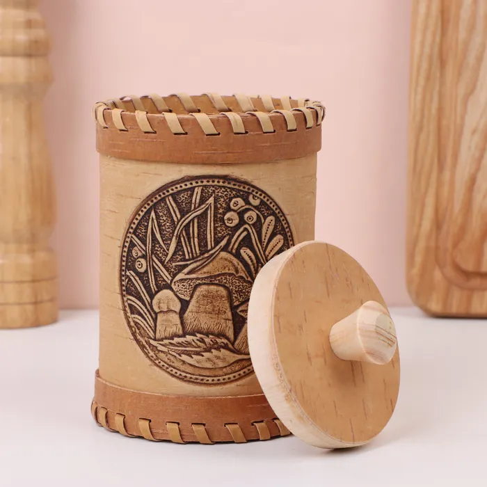 - Берестяной туесок прекрасно подходит для хранения мёда, сыпучих круп и сухих трав.