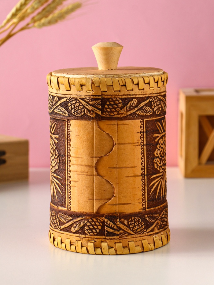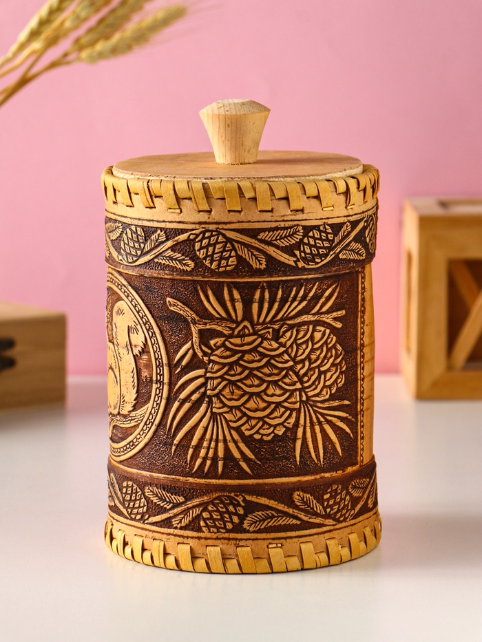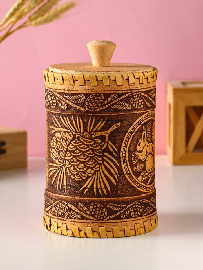 - Универсальное назначение: Используйте берестяную банку на кухне для круп и чая, в гостиной для хранения мелочей или как оригинальный элемент интерьера в эко-стиле. Это практичный и экологичный выбор для дома.