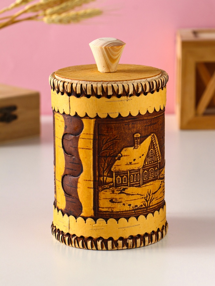 Туес шитый «Домики», банка для хранения, береста — Характеристики
