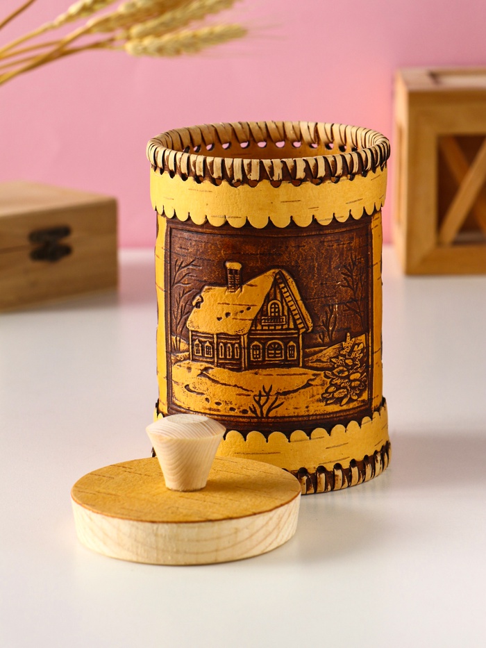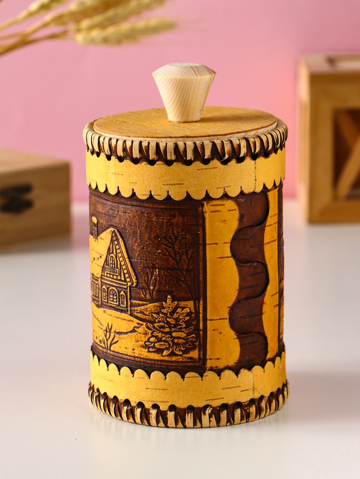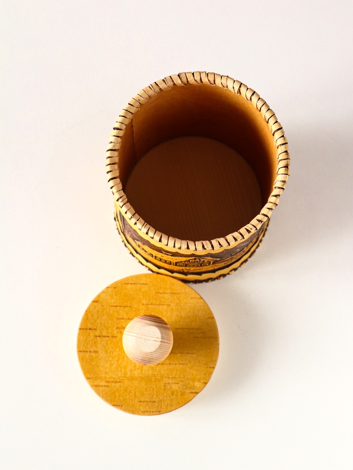 - Универсальность в быту: Используйте туес как емкость для чая, специй или круп на кухне. Он станет изящной шкатулкой для мелочей в гостиной или оригинальной упаковкой для подарка. Это практичный и душевный предмет интерьера.