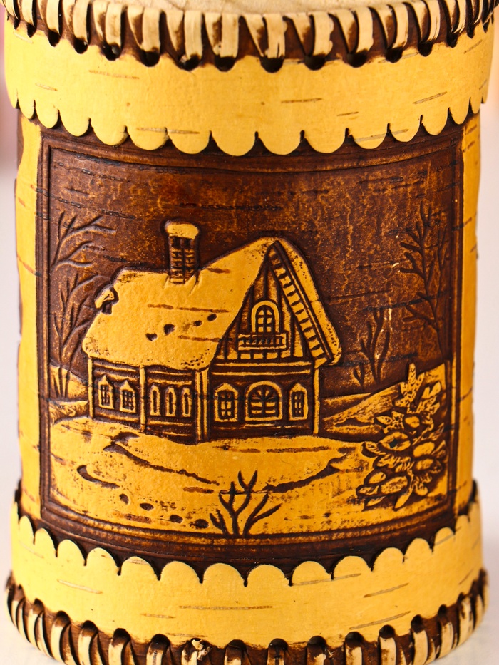 - Натуральная береста с узором: Каждый туес уникален благодаря природному рельефу и ручной работе. Узор «Домики» создает особое настроение уюта и тепла. Поверхность приятна на ощупь и обладает естественной прочностью.