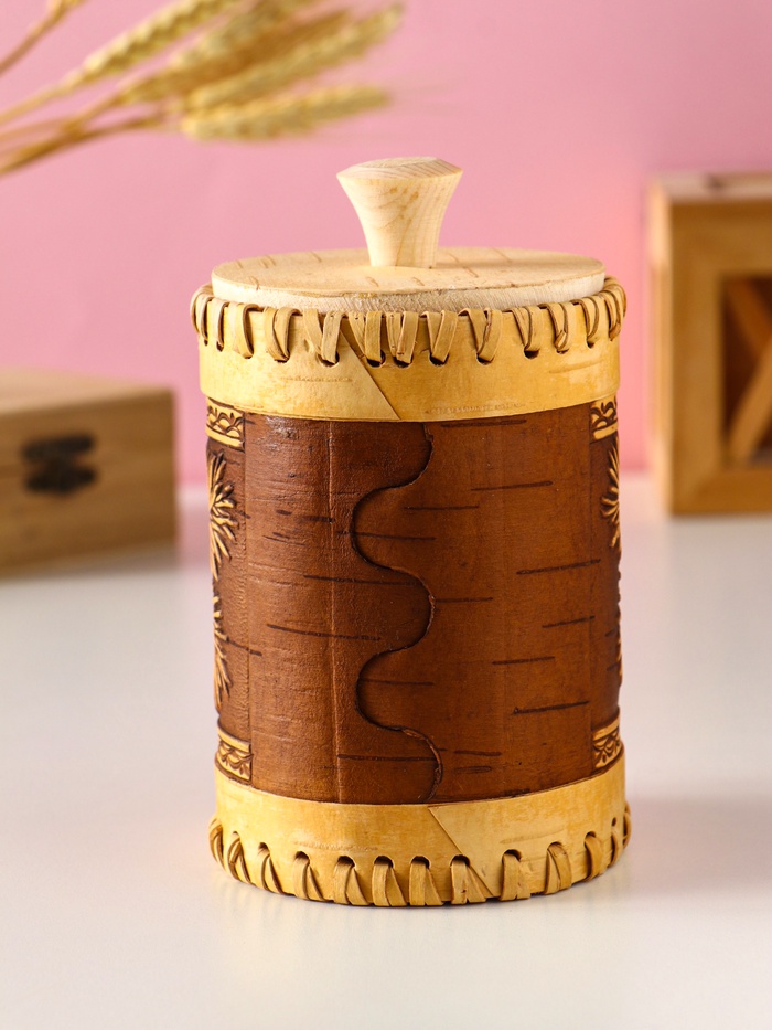 Экологичность и традиции: Этот туес — выбор для тех, кто ценит экологичные материалы и вещи с историей. Он привносит в интерьер уют и тепло натурального дерева. Идеально подходит для хранения чая, круп или как самобытный подарок, несущий в себе частицу русской природы.