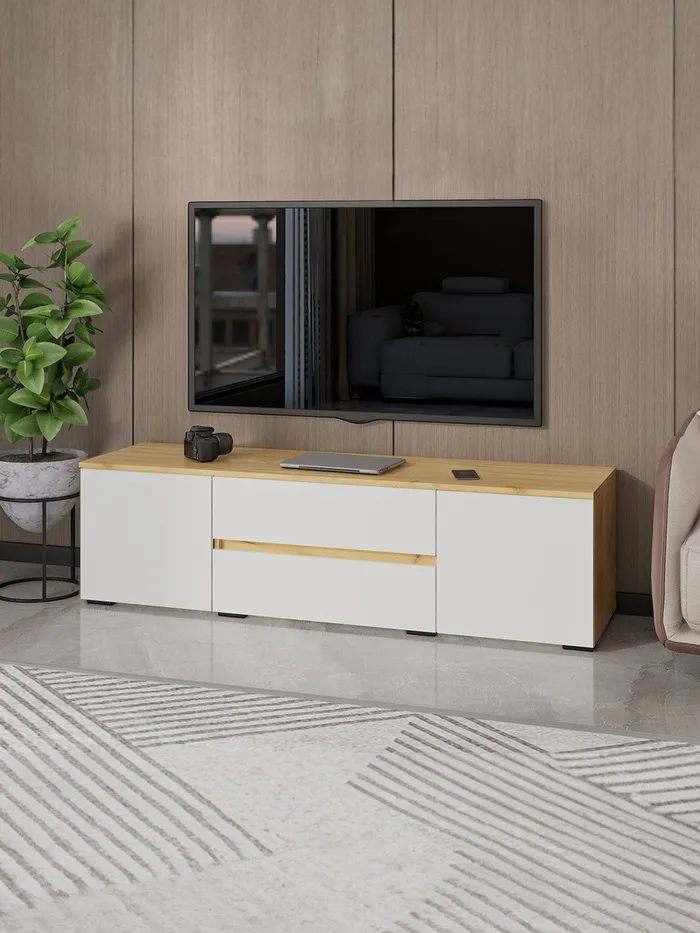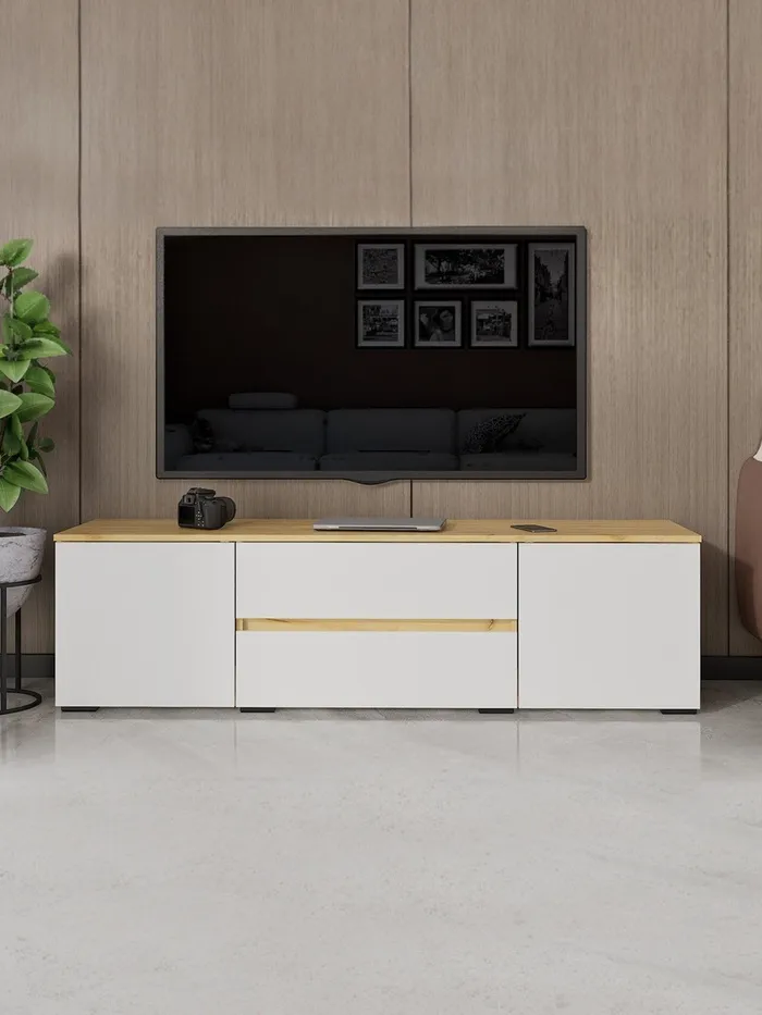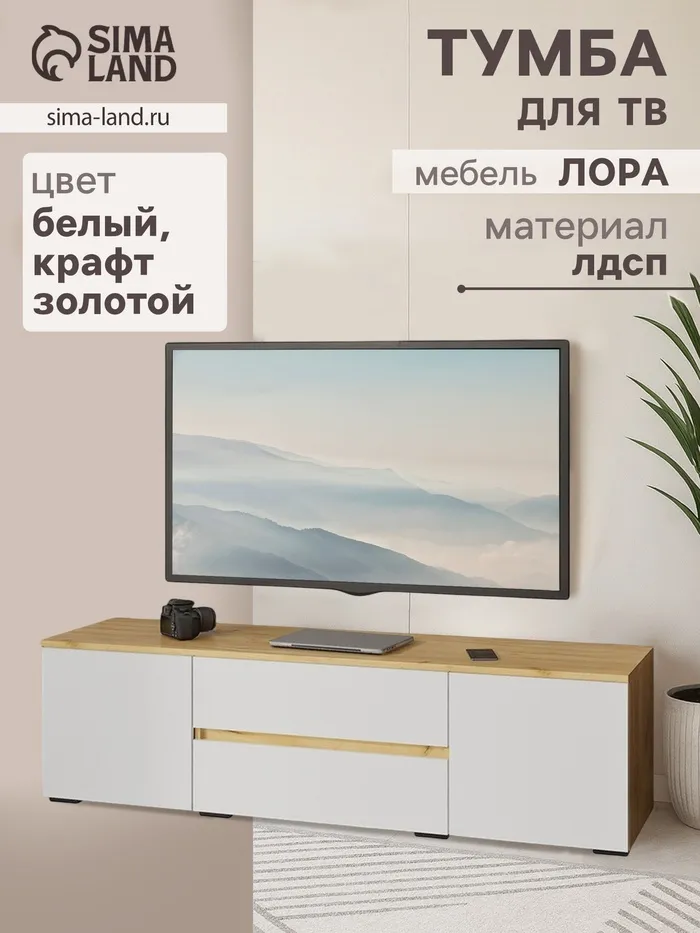 Функциональная мебель, предназначенная для размещения телевизора и сопутствующих устройств. В тумбе можно хранить пульты, кабели, диски, игровые приставки и другие предметы, связанные с использованием телевизора, что помогает поддерживать порядок в комнате.