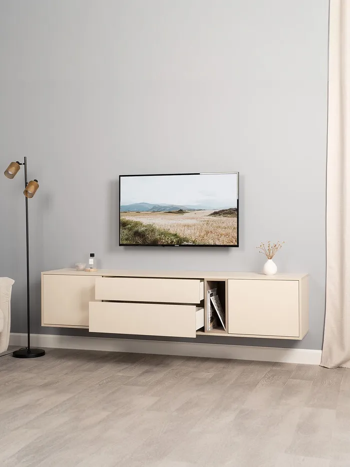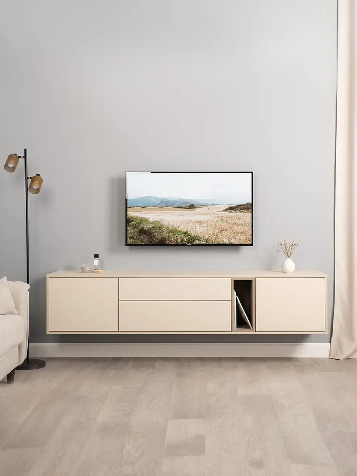 Привнесет функциональность и эстетику в ваш дом. Созданная в утонченном сочетании цветов сатин и эмили блаш, гармонично дополнит любую комнату, будь то гостиная или спальня. Открытая ниша, шкафы и два просторных ящика обеспечат дополнительное место для хранения пультов, дисков и другой техники, поддерживая идеальный порядок вокруг телевизора. Изготовленная из ЛДСП, тумба отличается долговечностью и устойчивостью к внешним воздействиям. Компактные габариты 2002x396x440 мм позволят удобно расположить её даже в ограниченных пространствах.