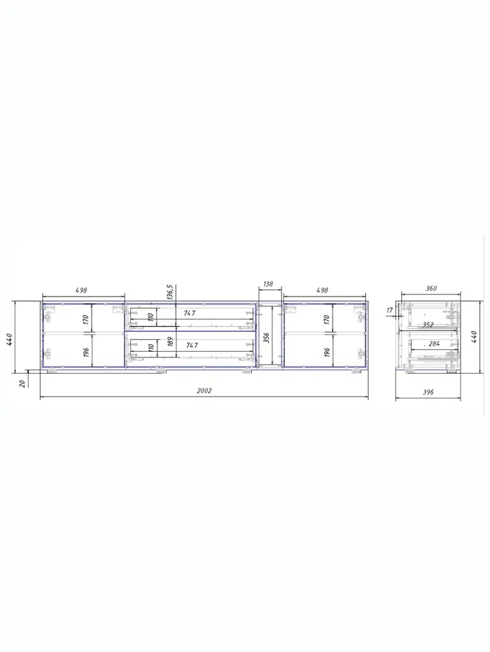 Тумба напольная под ТВ «Тайл 16.62», 2002×396×440 мм, цвет сатин/эмили блаш — Характеристики
