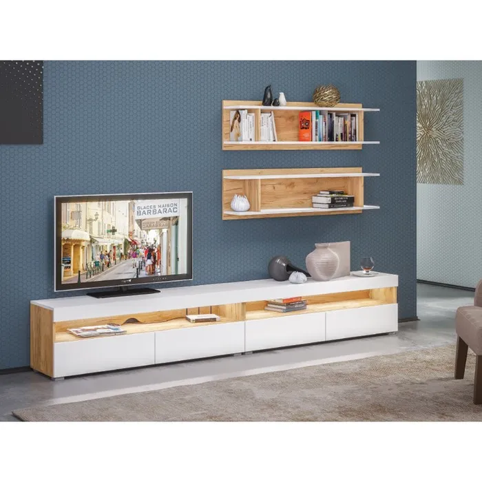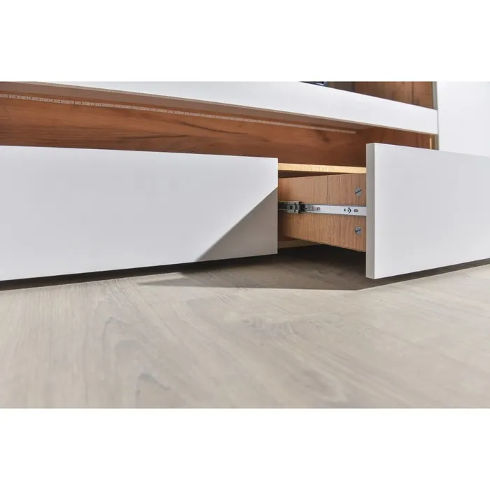Тумба под ТВ Альба, 1300х361х420, цвет белый премиум / дуб крафт золотой — Характеристики