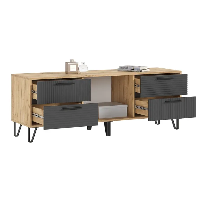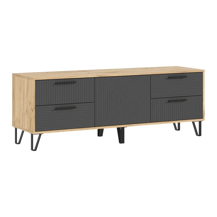 Тумба под ТВ «Флэш», с ящиками, 1502×426×542 мм, цвет браш графит МДФ/дуб крафт — Характеристики