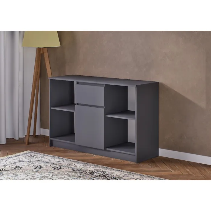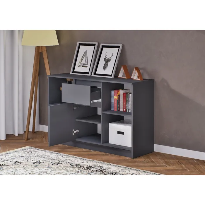 Простое решение для любителей функционального и современного дизайна. Аккуратные линии и графитовый оттенок позволят органично вписаться в общую концепцию комнаты, вне зависимости от выбранного вами стиля.