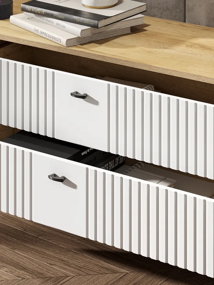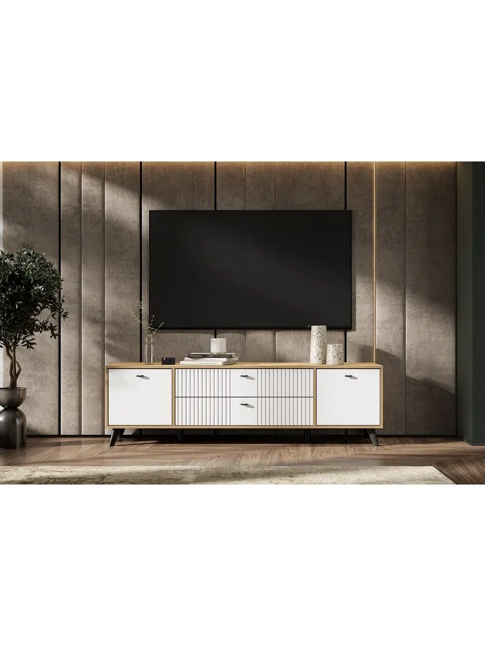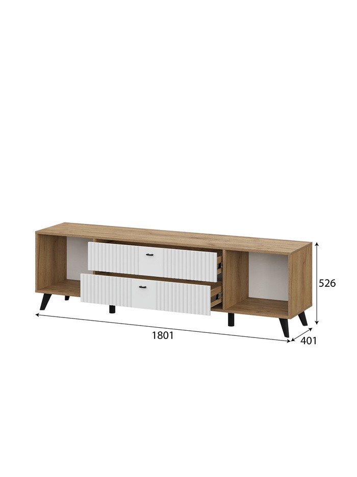 Тумба под ТВ «Милан», 2 ящика, 1801×401×526 мм, цвет белый/дуб золотой — Характеристики