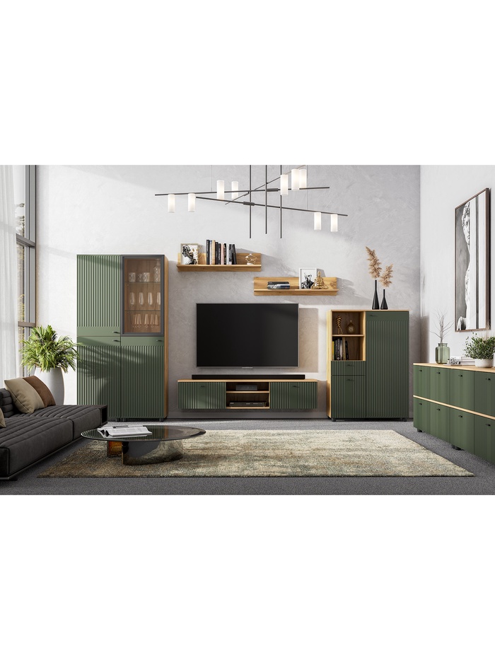 Тумба под ТВ «Милан», с нишей, 1601×418×368 мм, цвет олива/дуб золотой — Характеристики