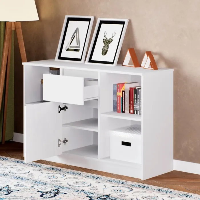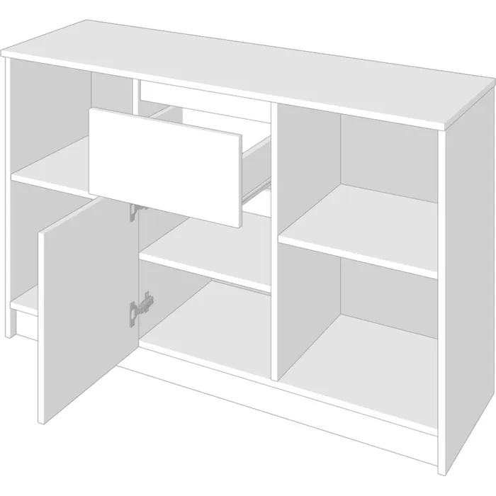 Решение для обустройства вашей гостиной. Компактный размер и функциональное наполнение тумбы позволяют расходовать ограниченное пространство комнаты максимально эффективно.
