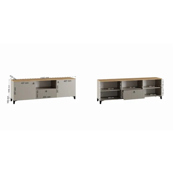 Тумба под ТВ Ника, 1500х410х516, Кашемир/Дуб/Бежевый МДФ — Характеристики