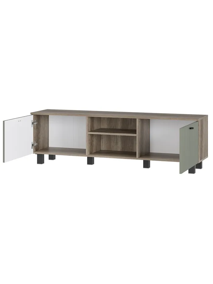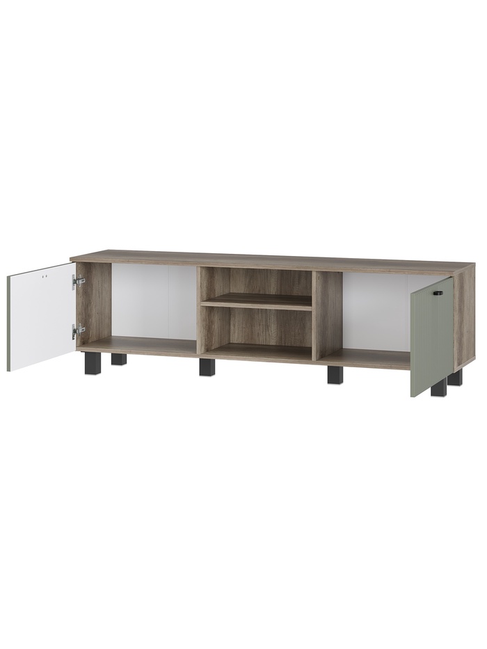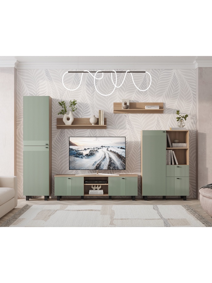 Функциональная тумба с современным дизайном и продуманной конструкцией. Широкая столешница позволяет разместить телевизор практически любого размера, открытые и закрытые ниши — хранить медиаприставки, пульты и аксессуары. Стильные фасады из матового МДФ с оригинальной фрезеровкой гармонично впишутся в любой интерьер — от минимализма до классики.