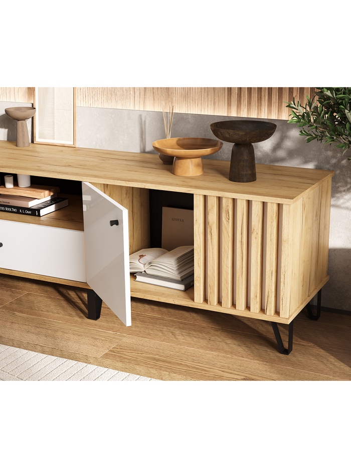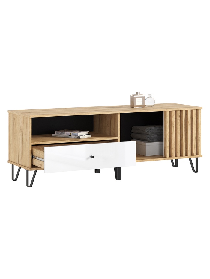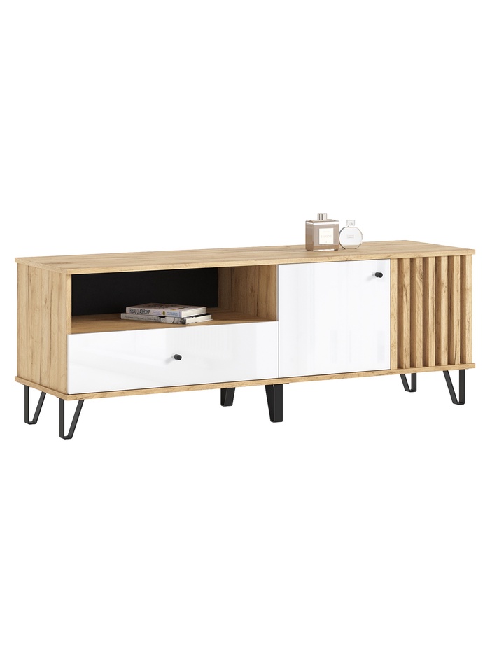 Тумба под ТВ «Роджина», 1502×426×511 мм, цвет белый глянец/дуб крафт — Характеристики