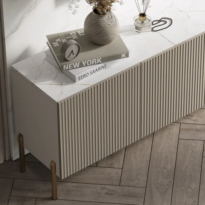 Сочетание стиля, функциональности и современного дизайна. С мраморным или кашемировым оттенком, прочным материалом МДФ и ЛДСП, также фрезеровкой на фасадах дверок, станет изысканным дополнением вашего интерьера, обеспечивая удобство и практичность.