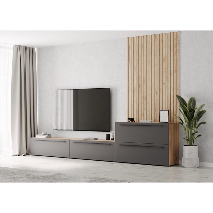 Тумба под ТВ «Стоун С81», 1100×460×820 мм, цвет дуб золотой/графит