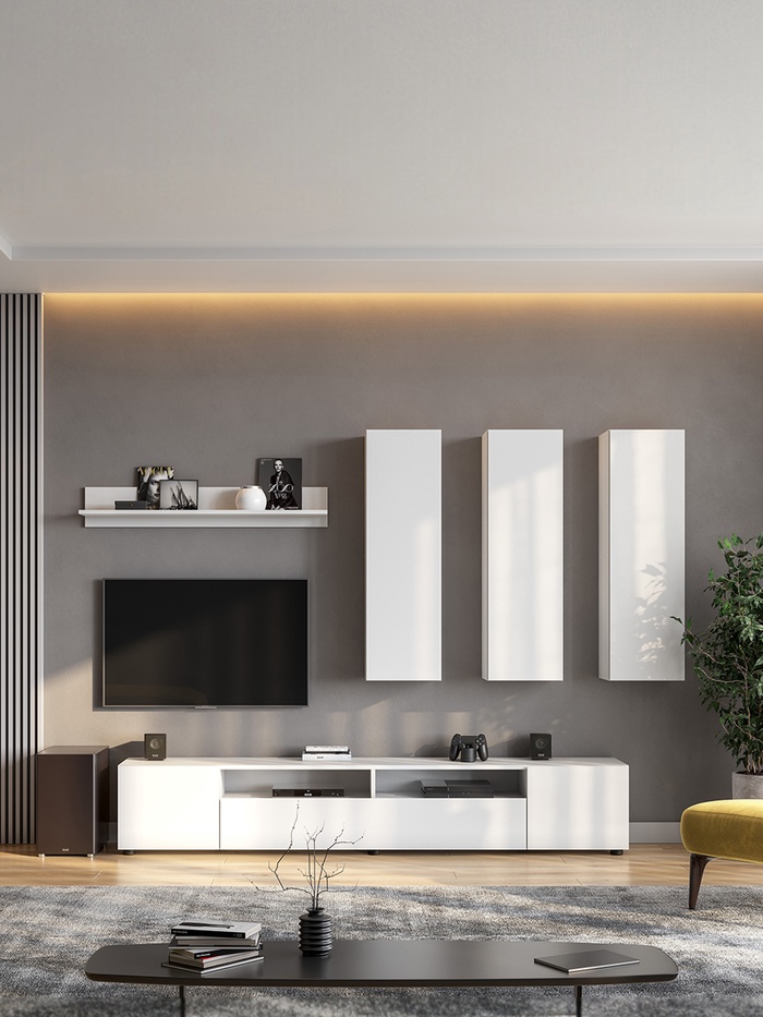 Современная и стильная тумба под телевизор «Токио» станет функциональным элементом вашей гостиной. Лаконичный дизайн в белом цвете гармонично вписывается в интерьер и создаёт лёгкий визуальный акцент. Модель может использоваться как напольная или навесная, что делает тумбу универсальным решением для хранения и размещения мультимедийной техники.