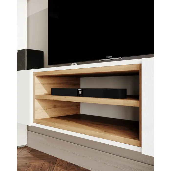 Тумба подвесная Милана, 2000х300х370, Белый/Дуб вотан