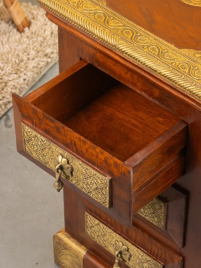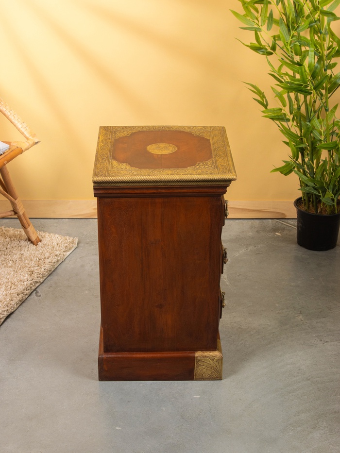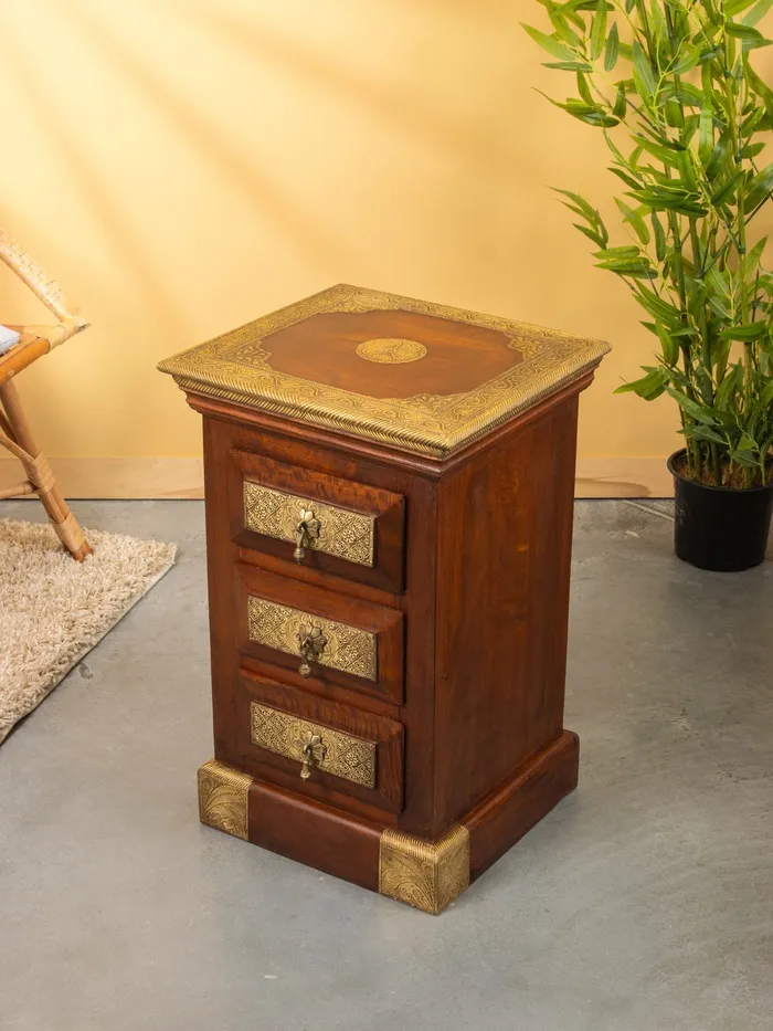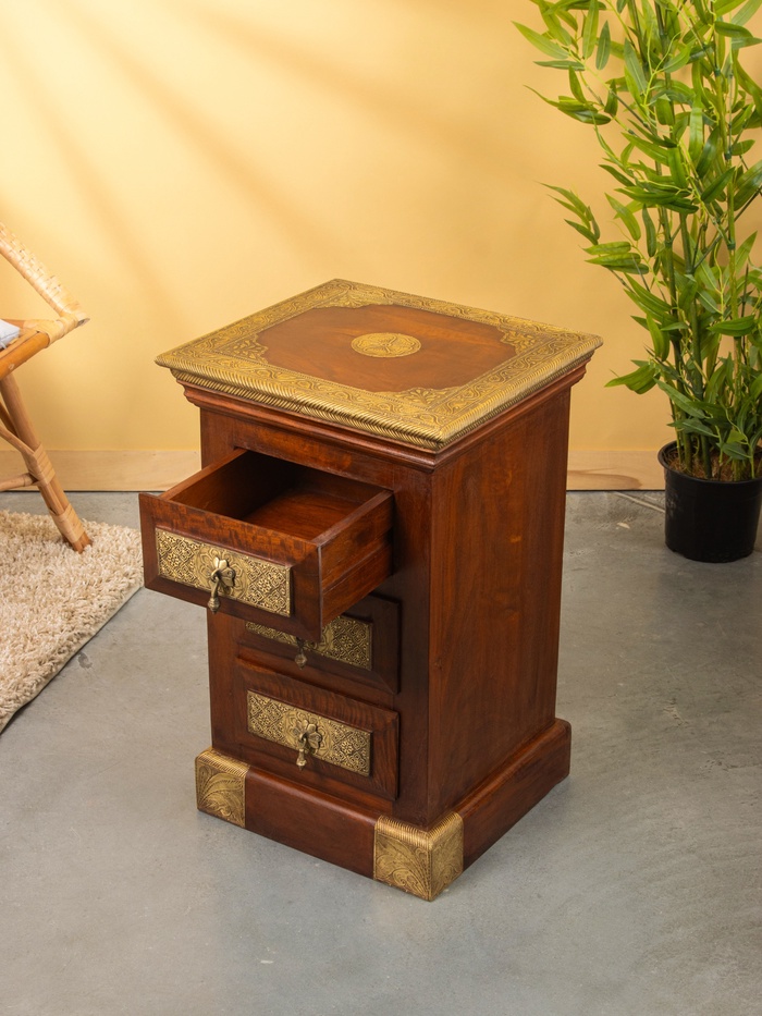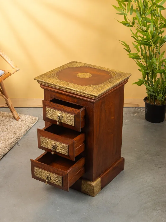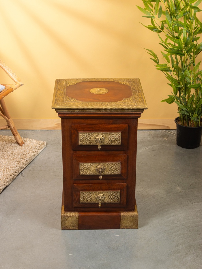 Компактная прикроватная тумба из массива дерева размером 40×36×63 см в элегантном оттенке венге. Три удобных ящика с латунной фурнитурой обеспечивают функциональное хранение. Готовая конструкция с качественной фрезеровкой - идеальное решение для организации пространства у кровати.