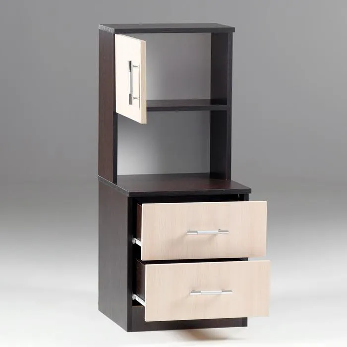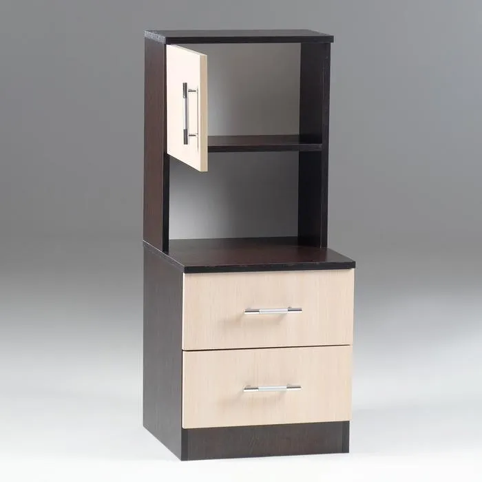 - Функциональность: Ящики, открытая ниша/полка и дверка обеспечивают разнообразные варианты хранения вещей, сочетая закрытое и открытое пространство.