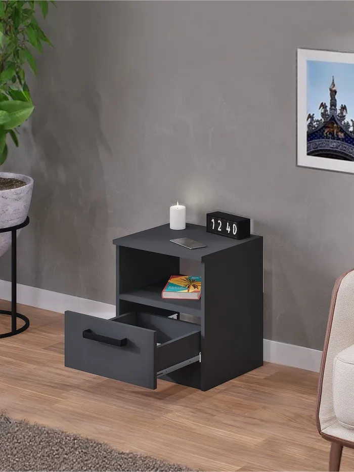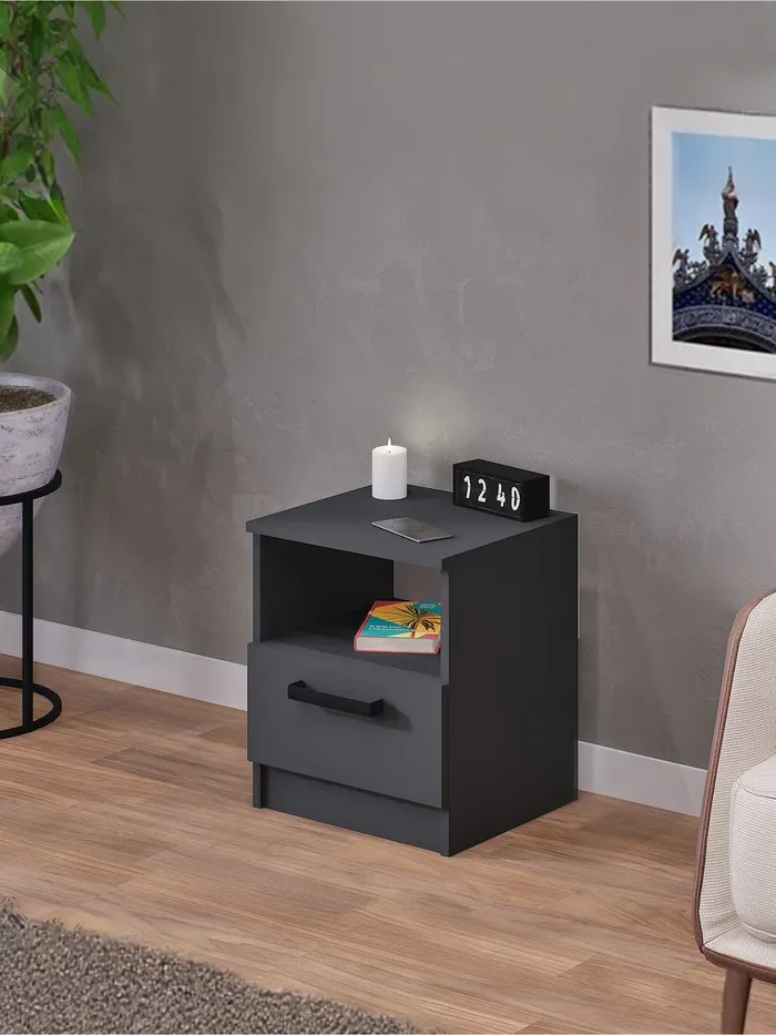 - Функциональность: тумба оснащена одним ящиком для хранения мелочей и открытой нишей, где можно разместить книги, часы или другие предметы. Верхняя поверхность тумбы может быть использована для размещения декоративных предметов, рамок с фотографиями или других аксессуаров.