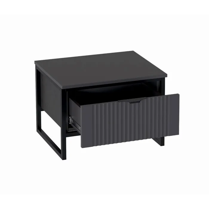 Тумба с ящиком "Нора", 545х425х380, Металл Бруклин / Графи прекрасно совместит в себе функции удобного комода и придиванного столика, на который можно поставить чашку с напитком, отложить книгу, рукоделие или пульт от телевизора. Декоративная продольная фрезеровка на МДФ фасаде цвета "Графит" и опоры на металлокаркасе цвета "Черная эмаль" соответствуют модным тенденциям этого года в ведущих зарубежных коллекциях. Дизайн коллекции гармонирует со стилем минимализм и лофт. Корпус изделий выполнен из качественного ЛДСП 16 мм цвета "Металл Бруклин", фасады из МДФ16 мм цвета "Графит". Толщина металлических опор - 20 мм.