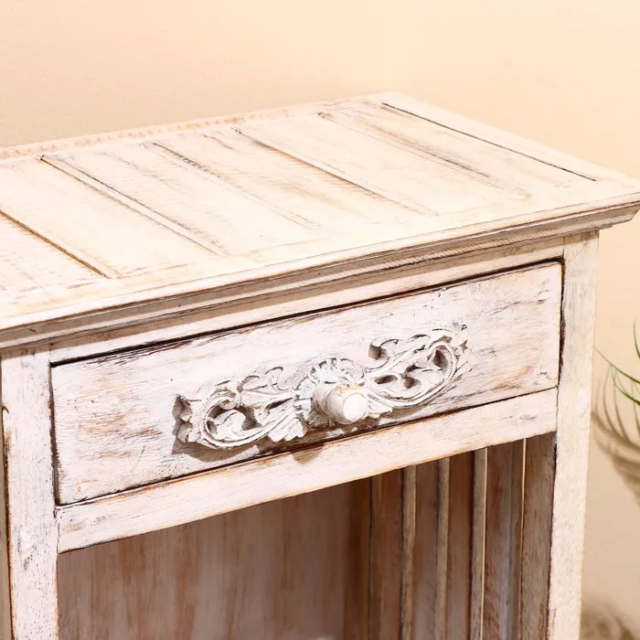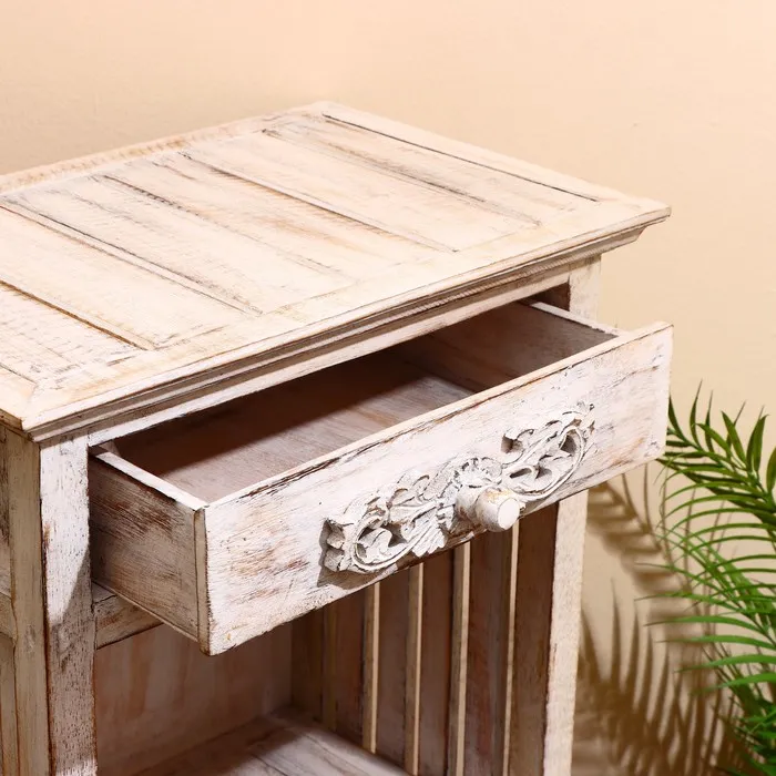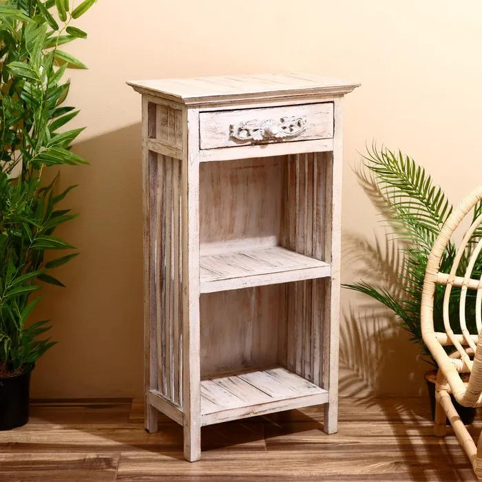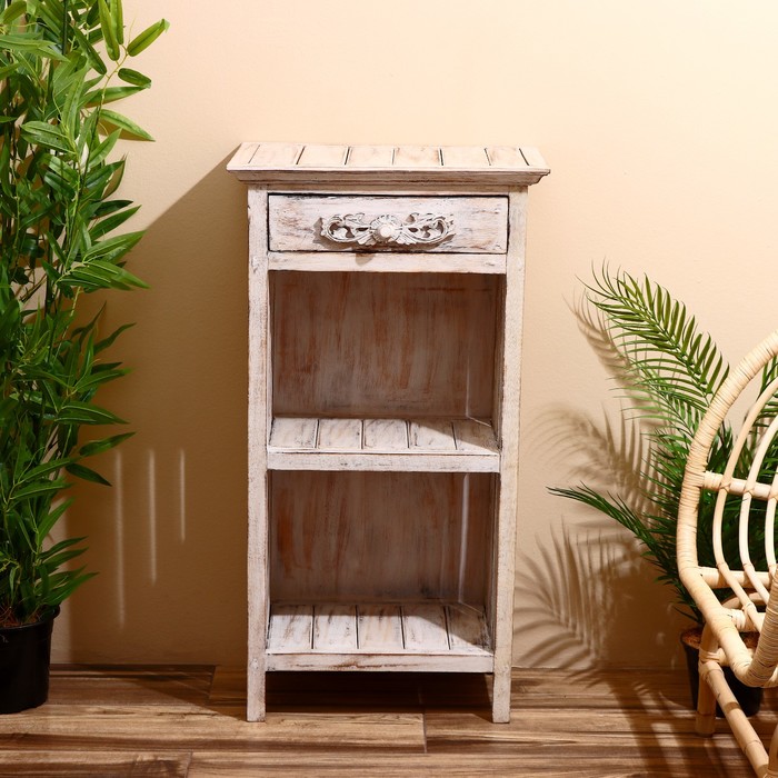 Тумба «Старый Бали», 50×30×90 см, дерево албезия, белая — Характеристики