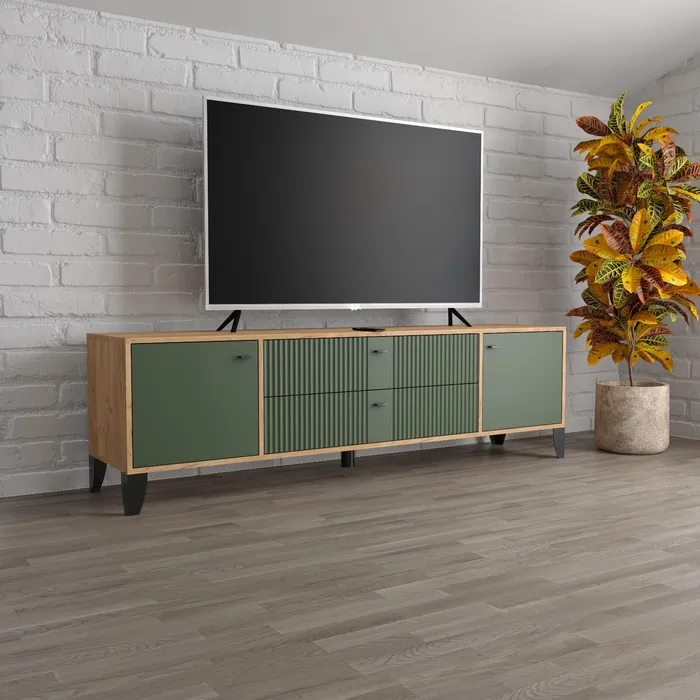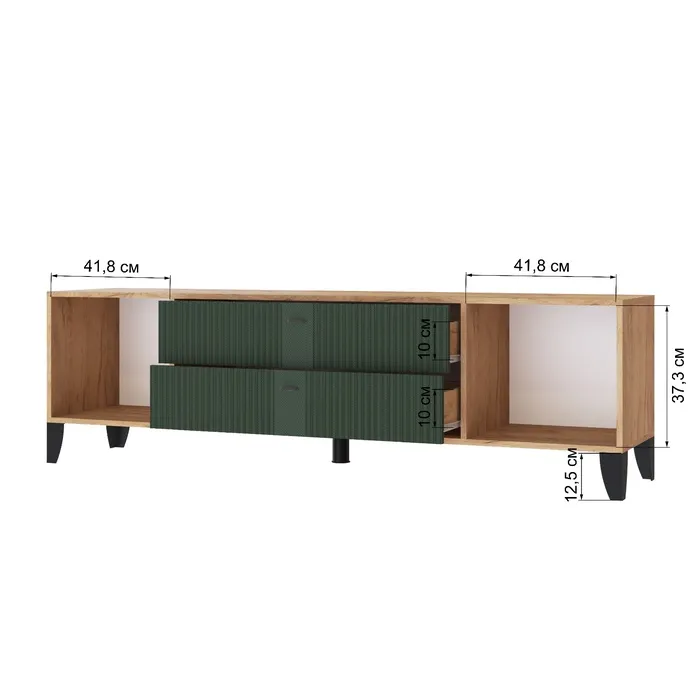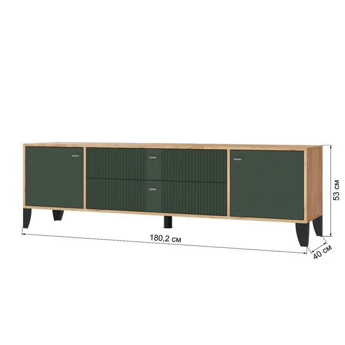 Тумба ТВ Парус-10, 1802х400х530, Дуб крафт золотой/Карбон дарк грин — Характеристики