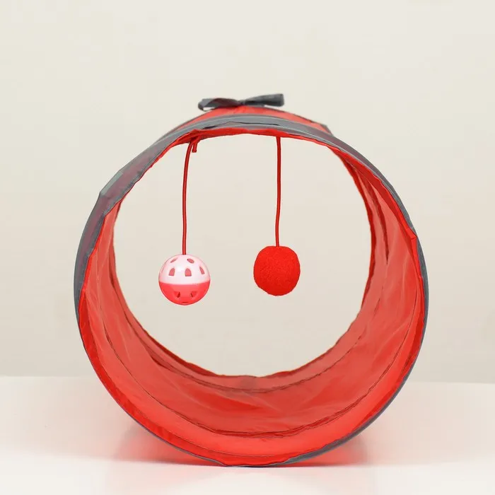 Туннель для кошек с игрушкой, 50 х 25 см, красный — Характеристики