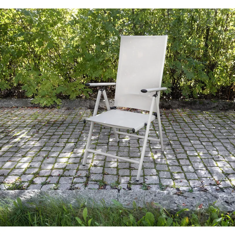Складной стул Parco Como с рамой из окрашенного алюминия и сиденьем и спинкой из водостойкой и устойчивой к ультрафиолету ткани Textilene - это идеальное решение для вашего сада или террасы. Размеры (Ш x Г x В): 56 x 65 x 107 см, максимальная нагрузка 110 кг.