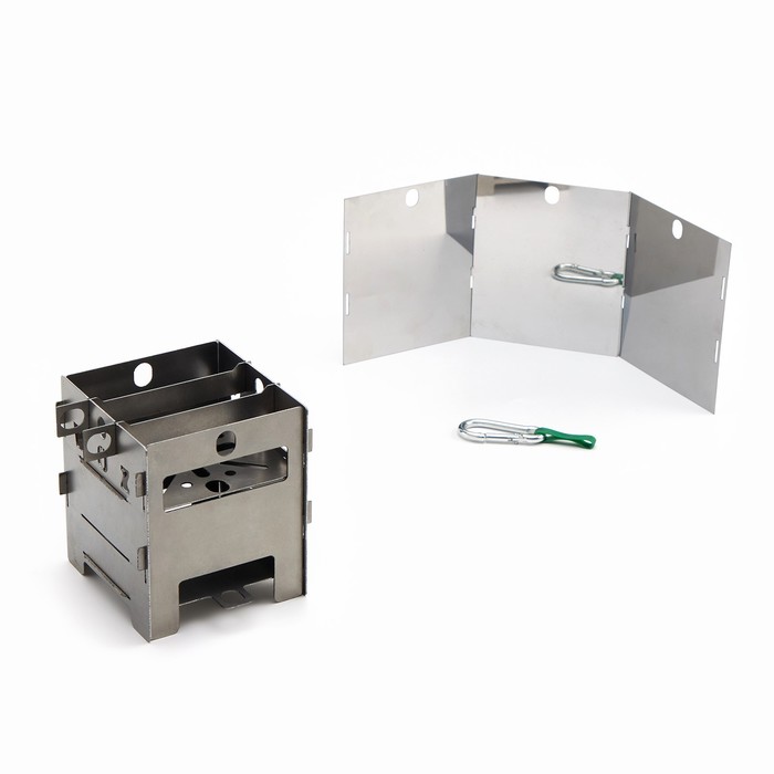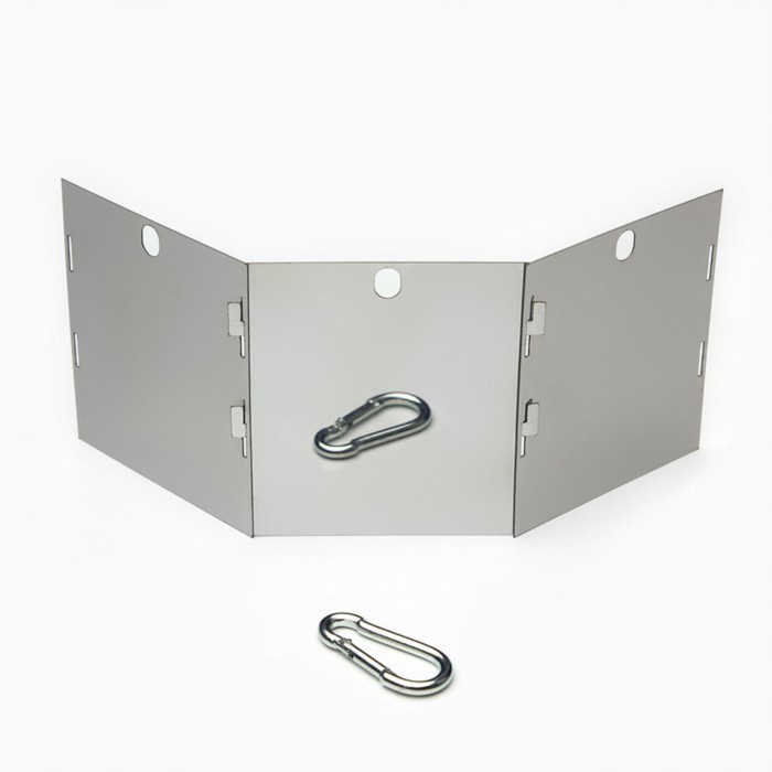 Туристический набор: щепочница, инфракрасное зеркало - 13×11×13 см, карабин 9 см, сталь 1 мм — Характеристики
