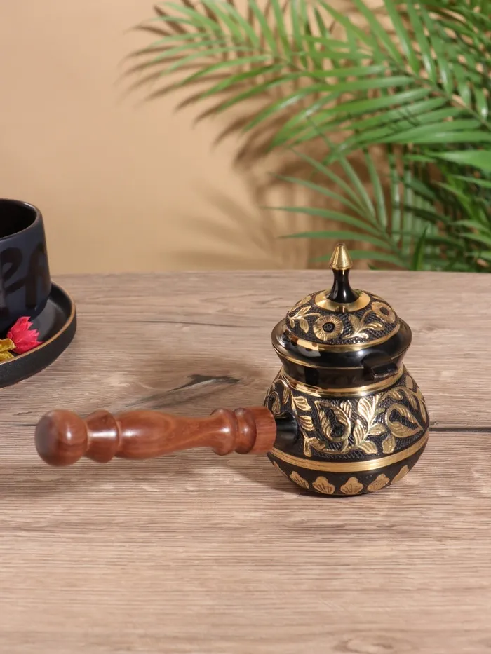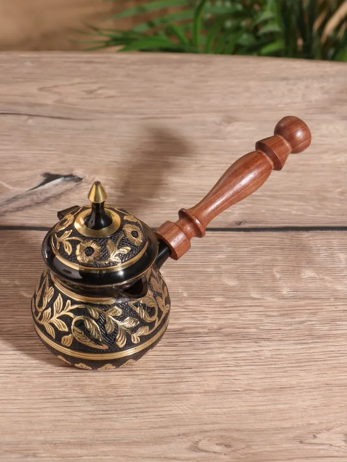 Турка "Чёрное золото" латунь, с крышкой и деревянной ручкой, 250 мл — Характеристики