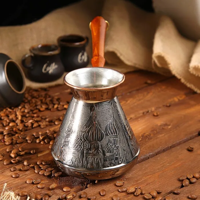 - Качественная медь: материал обеспечивает отличную теплопроводность, благодаря чему кофе будет вариться равномерно и быстро.